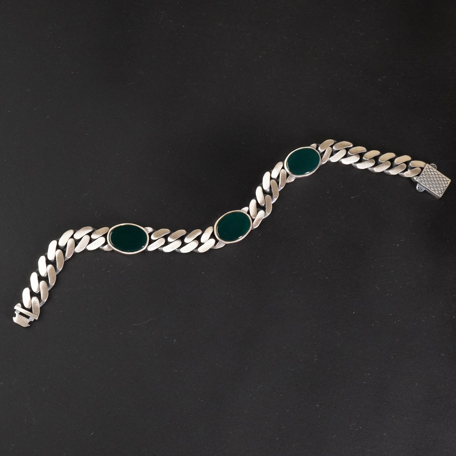 Silver Emerald Trio Cuban Link Men's Bracelet