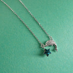 Silver Cute Dolphin Star Charm Chain Necklace