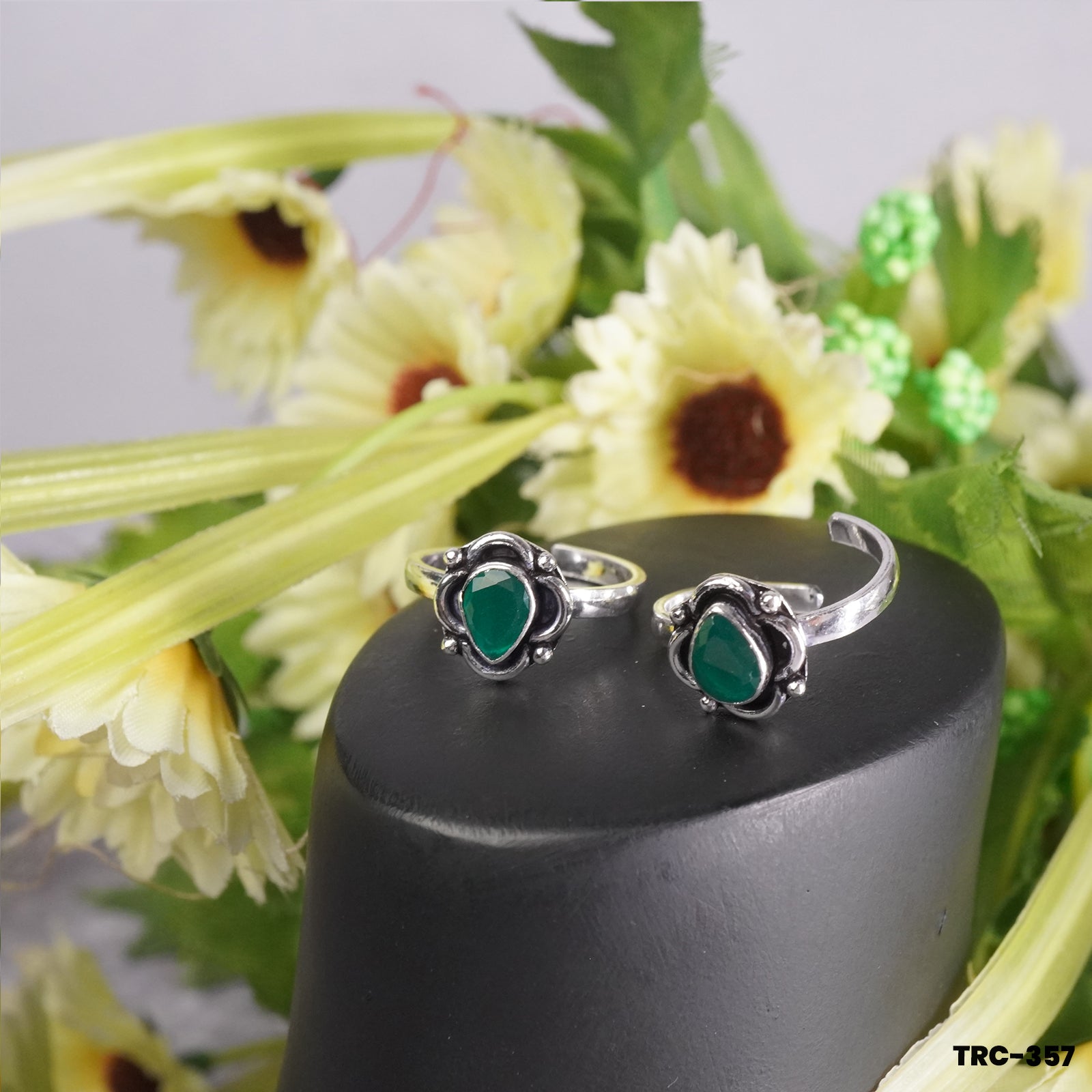 Pure Silver Daily Wear Toe Ring Design With Green Stone