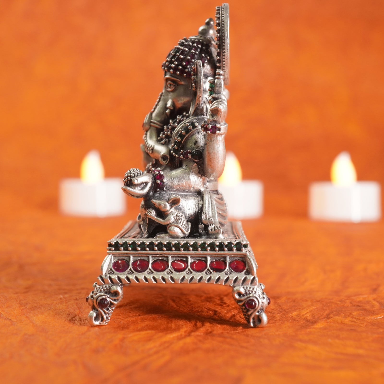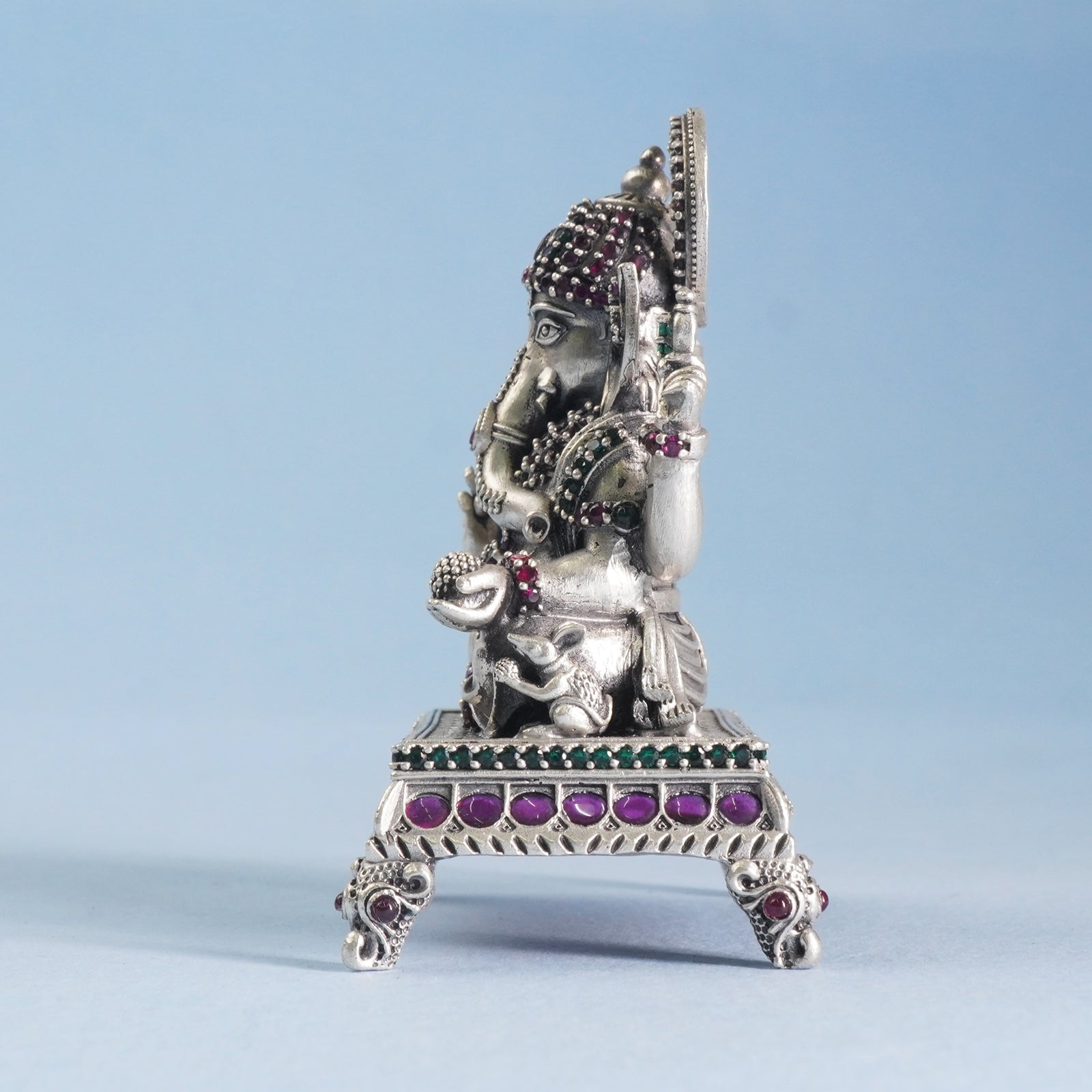 925 Silver Handcrafted Antique Stone Studded Ganeshji Idol